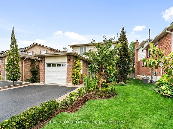 Meticulously maintained home in Miltons most sought-after neighbourhood. Pride of ownership is evident inside and out, with a thoughtful blend of modern finishes, practical updates, and lasting peace of mind. Surrounded by mature trees and thriving perennial gardens, this home sits within walking distance of preferred schools, parks, and the scenic Sam Sherratt Trail. The main floor offers two inviting living spaces, one with a cozy gas fireplace, a dedicated dining room, and a bright, functional kitchen featuring quartz countertops with an elevated backsplash and all stainless steel appliances, all tied together by 7-inch hickory engineered hardwood floors. Convenient main floor laundry and powder room add to the everyday comfort. Upstairs, the primary bedroom features a walk-in closet and a renovated ensuite bathroom, as well as three other generous-sized bedrooms and an additional full bathroom, offering plenty of space for the growing family. The finished, carpet-free basement extends your living space with a comfortable recreation area, separate office/flex space, and ample storage ideal for todays busy lifestyle. Step outside to a private backyard oasis backing onto Laurier Park, complete with an access gate and a convenient gas line for your BBQ, perfect for effortless outdoor entertaining. From the backyard, kids can head straight to Laurier Park through the private access gate, no roads to cross, just steps away from playtime and outdoor fun. Updates include roof shingles (2020), hot water tank (2022), and water softener (2013).