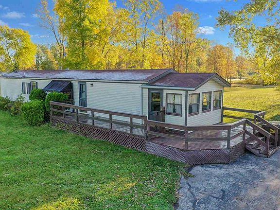 2 bedroom 1 bath mobile home on pretty 1.5 acre lot has vaulted ceiling, big bathroom with separate tub and shower & double sinks! Large wrap around deck gives you plenty of room to entertain! Home could also be a nice rental property as it is now. Here is an affordable way to enjoy country living! This property is being sold as is where is.