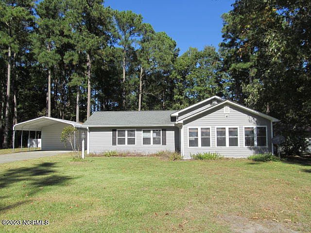 Open concept for this one bedroom, two bath ranch style home with water views of the Pamlico River. Enter into the bright and airy Carolina room/sunroom. Kitchen features ample cabinets, upper glass cabinets and pantry. Primary bedroom with walk in closet. This home offers a tankless water heater and whole house generator. Separate laundry room and a two car detached carport. Equal Housing Opportunity. Property owned by US Dept. of HUD [381-788312 ]. FHA IE (insured w/escrow), Subject to Appraisal. 203K eligible. Seller makes no representations or warranties as to property condition. Sold as is. Seller may contribute up to 3% for buyer's closing costs, upon buyer request.