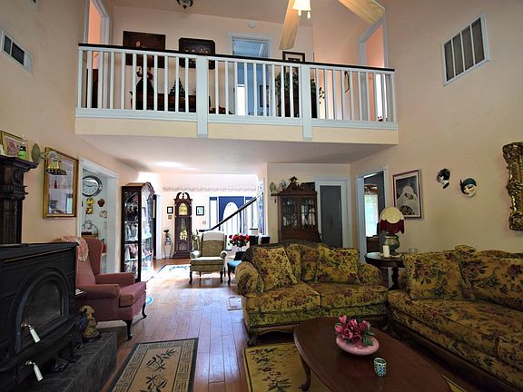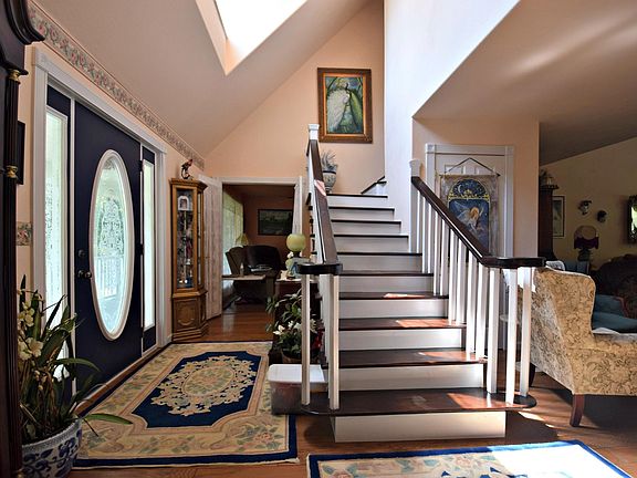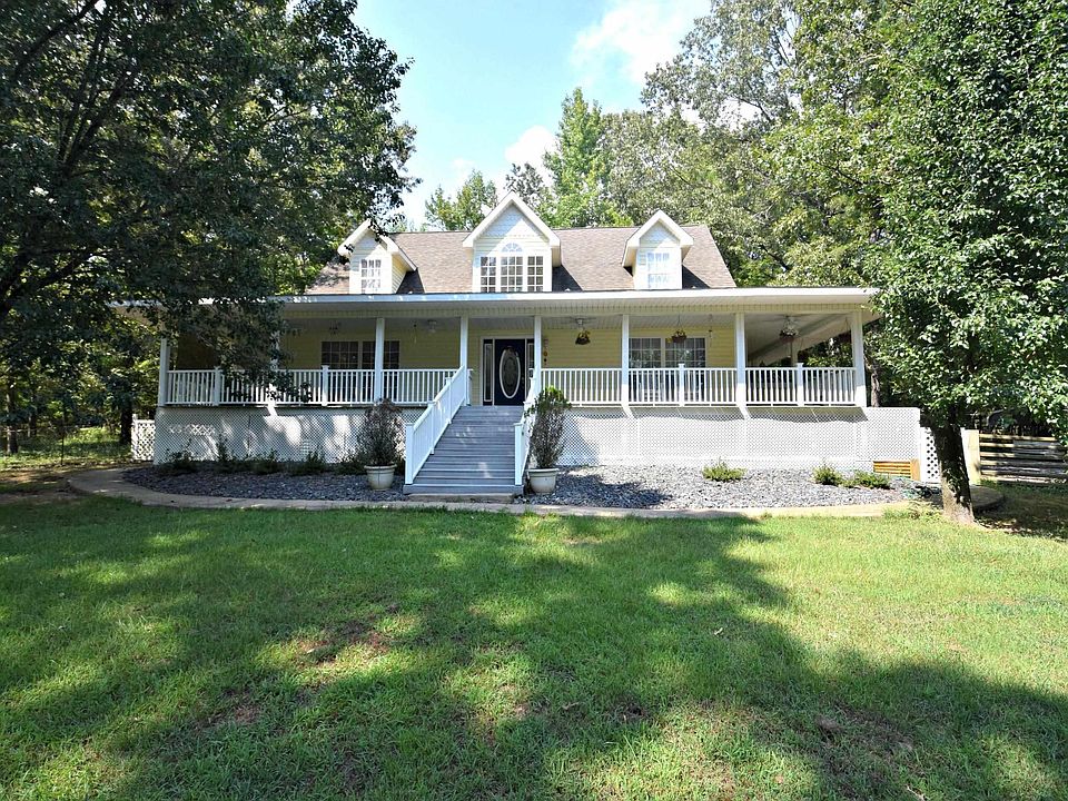 Large mature native hardwoods w/ trails throughout the property. Private, park-like setting, wrap around porches and huge back deck. White Oak flooring, bamboo flooring, Vermont Westwood wood stove w/gorgeous mantle. Open rooms with 2 bedrooms and 1 bath upstairs. Master bath has jetted tub. Natural lighting from the well appointed windows & skylights, bay windows, sliding glass door to deck from master suite. 30X50 shop with 220 electric, work benches, & half bath. Small spring fed pond. Very beautiful.
