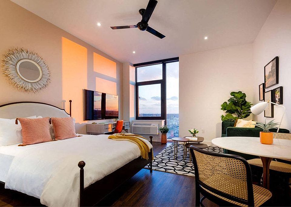 The apartment includes a fully equipped kitchen with updated appliances such as a refrigerator, freezer, dishwasher, oven, and microwave. The clean, contemporary finishes offer a high-end look ideal for anyone seeking a modern apartment in Philly. The spacious living area receives excellent natural light, making it perfect for relaxing or working from home. The bedroom offers a quiet, comfortable retreat, and the bathroom features stylish, modern fixtures.