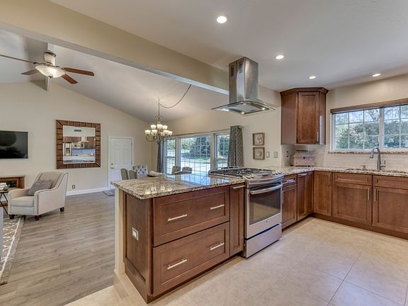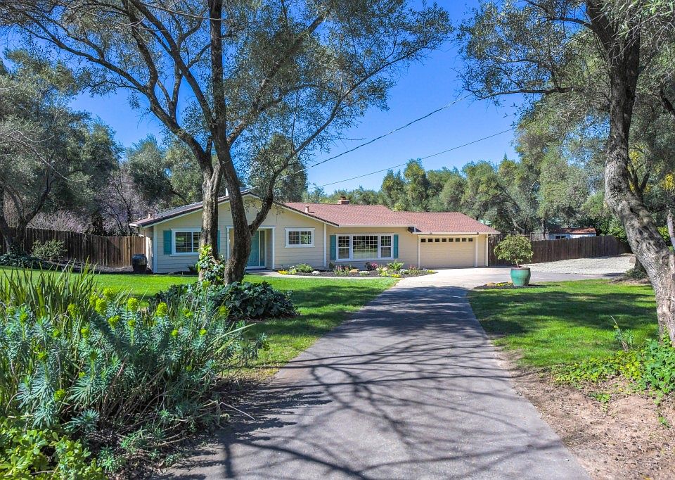 ITS JUST RIGHT! Freshly remodeled ONE STORY in Granite Bay on 1 acre with a pool and space for RV and Boat. 4 bedrooms and 2 remodeled bathrooms. ~ Open layout with large family/dining room with cathedral ceilings and fireplace. ~ Recently remodeled kitchen with stainless appliances and granite. Refrigerator included. Remote controlled undercounter LED lighting and kitchen window covering.~ Large fenced yard with lots of grass and big patio. Beautiful pool and spa. Fruit trees & Chicken run (chickens included if you want them!) Originally, this was part of an Olive Ranch - several olive trees remain. ~ Freshly painted inside & out. Fresh carpet. Windows replaced.~ Master suite has walk-in closet, laminate flooring, bath with shower and access to patio.~ Great Granite Bay Schools. No HOA!!