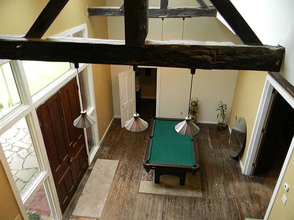 Cool old barn that has been turned into a stylish residence situated on 13 acres. Soaring ceilings with original hand hewn beams, hardwood floors, 2 bedrooms, 2 full baths, large kitchen, dining area, living rom and cozy family room with woodstove, new back deck and plenty of storage. Property mostly wooded with creek running through it.