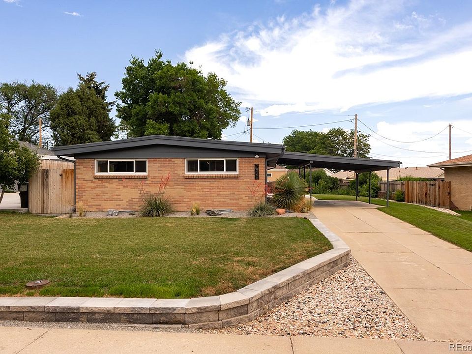 Welcome to one of Denver Metro's best kept MCM enclave secrets: Appleblossom Lane. This home draws you in with the original, unpainted exterior brick, and airy carport. As you approach the front a salvaged mahogany front door greets you. As you step inside, you are greeted with exposed beams, refinished hardwood floors, and newly updated, windows galore. This sun drenched living room is a perfect place for all your plants, and for you to dive into reading about the next case-study-house. The dining room is begging for your salvaged MCM dining table and chairs. The Kitchen is un-flipped MCM perfection. The original cabinets have all been rehabbed to their custom built glory, and adorned with the modern touch of a quartz countertop. The peninsula is supported by a restored, original wood pattern, and uppers hung with the same sculptured piece. A gas range awaits your Betty Crocker cooking, with the new, modern cleaning convenience of a stainless dishwasher. The floor is perfectly finished with slate tile of the era. Down the hall you will find the first bedroom/study, oversized bedroom/media room, and a third bedroom. As well as an original bathroom, updated with imported gloss and black tile flooring to complete the all-original look. Outside, a new grid patio awaits long conversations over a crackling fire, with your favorite beverage in hand. As well as a spacious yard for croquet or Jarts! Need even more space? This home boasts a FULL basement! With a bedroom (complete with an egress window), and refreshed 3/4 bathroom. The rest of the full basement is awaiting your imagination to create the dream space! Shuffleboard? Retro Bar? Mother-in-law Suite with outdoor access? Not only has this home been perfectly, and carefully updated but it has: new windows, newer water heater, newer HVAC, paint, fence, gutters, and patio. You will absolutely not want to miss this remarkable home; An MCM home that is move in ready, but also prime for adding you own sweat equity.
