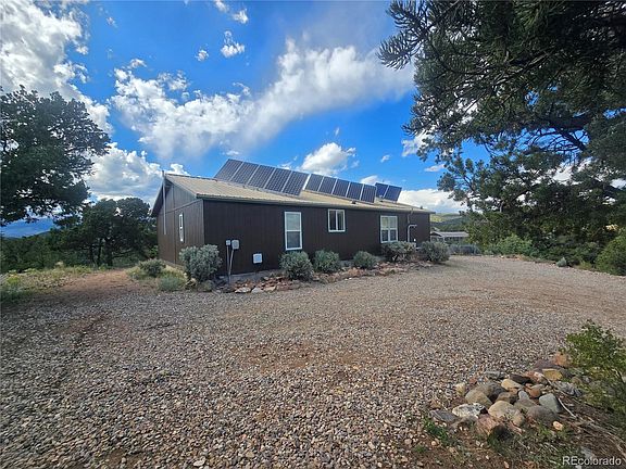 STUNNING, INCOMPARABLE VIEWS FROM THIS OFF-GRID HILLTOP HOME!! This fully furnished charming 3 bedroom/2 bath home sits atop 5.3 acres in the Sangre de Cristo Ranches! Split bedroom, open floor plan that features a large kitchen with an island and bar seating, ample sized dining room, and a relaxing family/living room with 83" T.V and soundbar. This home comes with all the bells and whistles! Home sits on a concrete stem wall foundation and is built for artic conditions, offers a central heating furnace and woodburning fireplace. Security for the home includes Arlo cameras, personal weather station, Eco bee thermostat, and a Smart things hub, (1G fiber internet, to Wi-Fi router installed) and a gated gravel driveway. Solar system consists of 12 solar panels, 12- 6-volt batteries, 2- 4000-watt inverters (provides 120/240 volts), and a 10KW Kohler propane generator. Water and sewer are provided with a 395-foot private fresh water well, and a private septic system. Relax on the flagstone patio as you soak in the view of Mt. Blanca and the surrounding mountains. This is a must-see home; you will never want to leave!!