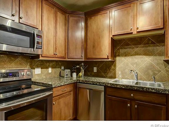 Great professional, urban vibe in the suburbs! Designed for a worry free life style âEUR" secure bldg w/ elevator access, 2 reserved tandem garage spaces plus storage space. Live, work and play all within walking distance - golf, light rail, restaurants, shopping (including Park Meadows), DTC, Inverness, Meridian and major highways. Bedrooms are located on opposite ends of the unit providing privacy. Stainless appliances; granite counters; plank, cherry hardwood; walk in master closet; ceiling fans; gas fireplace; outdoor gas fire pit; soaring ceilings, lots of natural light. Located on the first floor with direct handicap access to the outside of the building.