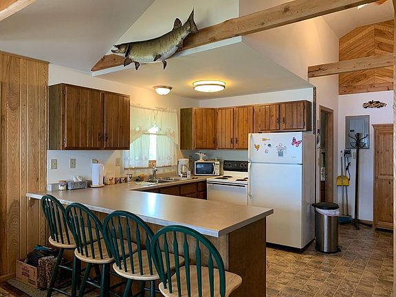 SUPER CUTE 3 season all newly redone cottage featuring western exposure and 100’ of level sand frontage on Pine Lake! This beauty boasts charm and begs for swimmers! Inside you’ll find a bright open concept with T&G Ash walls, a cathedral ceiling accented with square beams, lots of lakeside windows and a large horseshoe design kitchen with eat in breakfast bar. The interior was stripped down to the cedar exterior siding and rebuilt with all new wiring, insulation, Ash paneling & drywall, solid hickory cabinets, flooring and more! There is one bedroom, plus all the futon sleeping space in the living room! Cute little electric fireplace takes the chill out on cool nights. Newer half bath. Roof was new 10 years ago. Then within a step of the lake sits the coolest screen house/sauna building! Lakeside screen porch makes you feel like you’re sitting on the water. Middle changing room & rear cedar sauna w/ wood stove, Lake Superior rocks & shower from well water. This is a one cool gem!