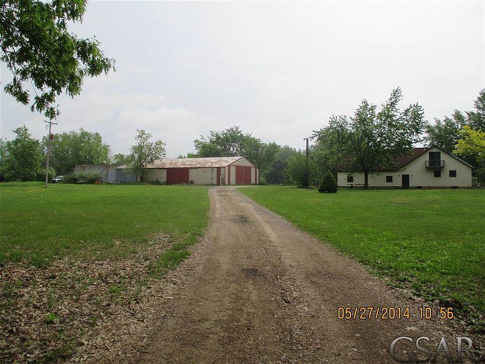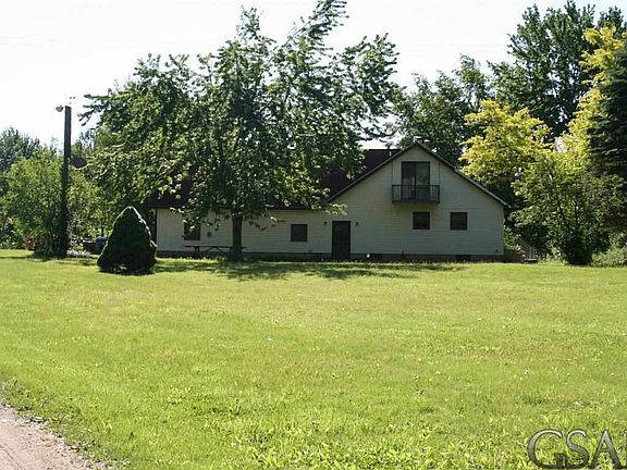 3 BR home and 61 glorious acres running through the Looking Glass River! Peaceful, private setting at the end of S. Ruess Rd., Bennington Twsp., Perry Schools. Some acreage is wooded, some could be tillable. 3 steel outbuildings: "Morton" outbldg. 60x80 plus addt'l. 30x60. Great workshop area & accommodations for additional vehicles! Home is a "chalet" type with upper bedroom. Wood stove supplements propane heat. Spacious bsmt. with walkout offers shower, sink & stool. Some appliances included!