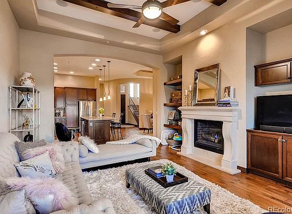 This exquisite home offers a wonderful blend of tasteful design, high-end finishes and upgrades throughout! Soaring ceilings, gorgeous hardwoods and fabulous architecture welcome you home and your guests will adore the spacious open floor plan! The formal dining area allows ample seating, wine cooler and side bar and the center of entertaining will be your chefs delight kitchen offering a huge granite-topped island, stainless appliances, custom ovens and gas cooktop! After dinner, everyone can gather round the custom fireplace for coffee and cocoa or venture out to the balcony for evening stargazing! Your master suite offers pastoral views, an incredible 5-piece spa-like bath, huge shower and walk-in closet! For even more space, the lower level provides a cozy family room, wet bar, wine cellar and 4th bed and bathroom! The loft is perfect as a study for busy professionals, family room or artists retreat! Golf course views from every level! Nearby light rail, shopping, dining and DTC!