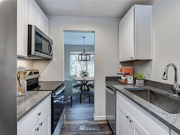 Freshly remodeled - modern sophistication throughout! Beautiful vinyl plank flooring throughout on both levels (no carpet). Delightful floor plan! Gourmet kitchen w/granite slab countertops, brand new stainless appliances, updated light fixtures. Delightful wood-burning fireplace for a cozy ambiance. The open floor plan is spacious and yet so private! This two-level townhome comes with a large garage, and is located ideally close to downtown Edmonds, abundance of shops in Lynnwood, light rail and local parks nearby. Sunny and bright, covered entrance deck, private fenced yard w/mature landscape. Large main bedroom, a second bedroom plus a huge flex room that can be home office, crafts room or a guest suite. Luxurious living in Edmonds!