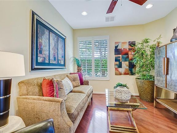 This beautiful 2 bedroom 2 bath plus den is a highly desirable first-floor end unit. It has long lake views and is move-in ready with 2-car garage with his and hers separate garage doors. This coach home was a builder model and has only been used occasionally. Immaculate condition. Kitchen and breakfast room have great views of the lake. Stainless steel appliances. Featuring neutral colored tile flooring throughout with beautiful hardwood in den and carpet in the bedrooms. Master bathroom suite has roomy soaking tub, walk-in shower, dual vanities and private water closet. Master suite overlooks lake and has his and hers walk-in closets. Den has plenty of natural lighting and would make a great office or 3rd room for guests. Guest bathroom has combo tub/shower and is elegant. Quincy Square provides as much privacy as you would like or engage and join many of the neighborhood events/activities. It is perfectly located just a few short minutes to a variety of restaurants, shopping, Naples Pier, beaches, downtown Naples, and entertainment.