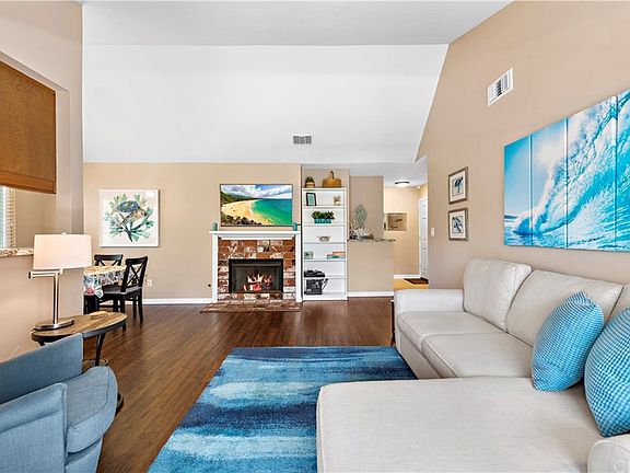 Welcome to Capewoods community complex in beautiful Huntington Beach. This second floor end unit condo features approx 1,044 sq. ft. of living space with 2 bedrooms, 2 baths, Engineered hardwood floors and tile. The master bedroom with ceiling fan and balcony access features a spacious walk-in closet and master bath with an oversized vanity and granite counter top. The second bedroom also has a ceiling fan and features double closets. The bright and airy living room has vaulted ceiling and a great amount of natural lighting from double pane windows. This room also features a brick fireplace and has balcony access through a sliding glass door. The balcony is spacious and overlooks the neighborhood. The kitchen with an in-dining area features wood cabinetry, granite counter tops and pantry. Laundry area is located right next to the kitchen in a separate closet. Extra storage space is near the condo entrance and in the garage. Community amenities include a pool, spa, and clubhouse. HOA pays for trash and water. This home is centrally located near schools, parks, restaurants, shopping centers and the beach. FHA Approved!