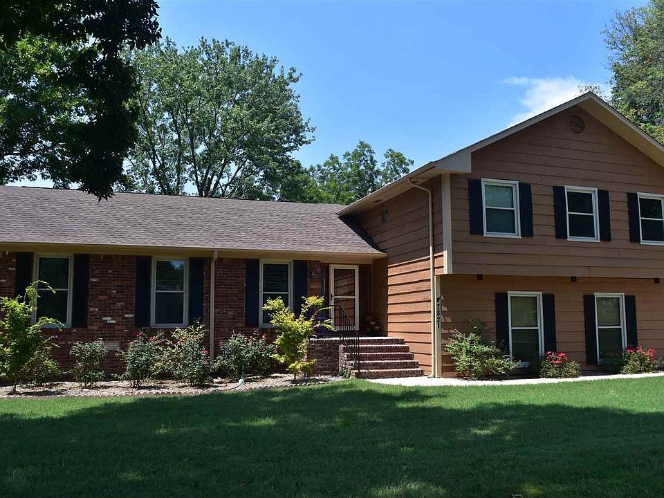 4 bedroom home, completely remodeled kitchen to include granite countertops, custom cabinets, recessed lights, smooth vaulted ceilings, and tile floors. Opened the floorplan to wonderful family and dining rooms with wood floors, vaulted ceiling, and fireplace on main level. Downstairs also remodeled, new carpet, sheetrock, doors, and paint, also has sunroom perfect for office or craft room down stairs. Master includes large closet and private bath. Large guest rooms with plenty of storage. Storm shelter in back is "as is condition". 2 car side entry garage, huge fenced backyard with new deck. Drive your golf cart to Valleyhill for a game of golf. Fresh paint, new carpet and ext doors.