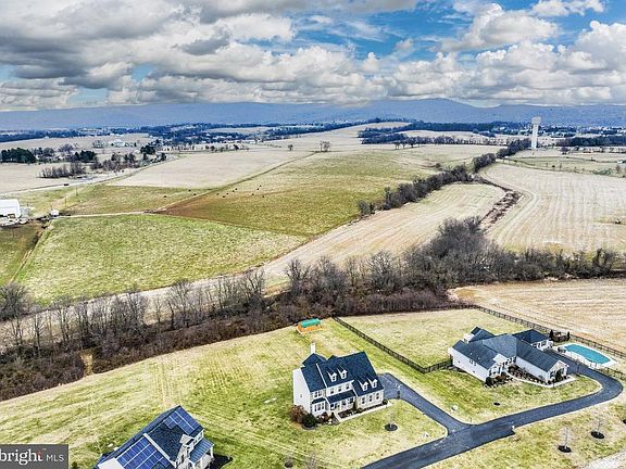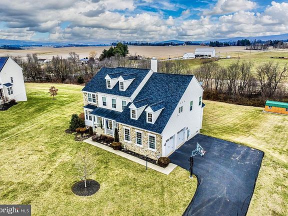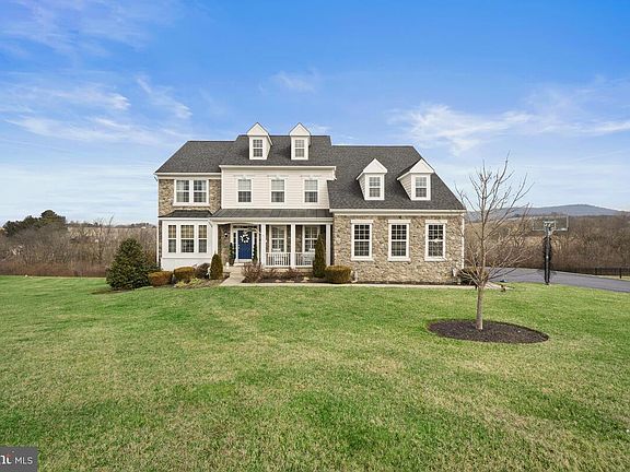 Come fall in love! This spectacular home is nestled in a private subdivision of only four homes in Middletown Overlook with breathtaking mountain views. Located in Frederick County, but steps away from the town of Middletown and Middletown schools. No town taxes and no HOA! This home is situated on 1.4 acres and features 5 bedrooms, 5-1/2 baths, 2 car side entry garage and over 4,900 finished square feet of living space. Upon entering this home your eyes will be immediately drawn to the mountain and farm views through the windows surrounding the family room which is also accented by a wood burning stone fireplace! The elegant hardwood flooring on the main level, staircase and upper hallway is absolutely stunning. The front of the home features an incredible dual staircase, formal dining room, a large living room with glass french doors and a powder room. Just off of the family room is a bright and spacious office that looks out at the adjacent farmland and mountains in the distance. The gourmet kitchen with stainless steel appliances and custom cabinets is open to the family and breakfast rooms and features granite countertops and a center island with plenty of space for family and friends to gather around! The breakfast room is surrounded by windows looking out onto the picturesque farmland dotted with cows, the infamous Middletown water tower and the high school. This open concept area will be the heart of your home where memories will be made that will last a lifetime! A large laundry room and mudroom with access to the garage is located off of the kitchen. Upstairs, you will find the owner’s suite with tray ceiling, dual closets, and a luxury bath with double vanities, custom cabinets, gorgeous tile shower with bench, and a large corner soaking tub. Four other bedrooms and three additional bathrooms complete the second level. The first of the guest bedrooms features its own private bath and walk-in closet. This iconic Americana bedroom is surrounded by windows with the most amazing views and has plenty of room for a desk. The second guest room also has its own private bath and walk-in closet. At the end of the hallway you will find the two remaining bedrooms, a hall bath and linen closet. Downstairs, the fully-finished walk-out basement has a gaming area and a living area perfect for watching TV or for hanging out with friends. The basement has a full bath and an additional 1000 square feet of unfinished living area for storage - including custom built shelves that are perfect for keeping everything in its place! Outside there is a 12x24 lofted shed perfect for storing your tractor. This home has been lovingly maintained - it is almost like new! Just minutes from downtown Middletown, enjoy all this small town has to offer and the ability to walk to all the town events like Christmas in the Valley and Heritage Days. This home will not last!