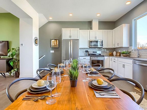 *Interior photos and virtual tour are of model and not actual house.* Gorgeous finishes are throughout this home with matte black accessories, white quartz countertops and white cabinets. An extra finished DoMore space is ideal for working from home! Find your modern oasis in this beautifully upgraded, Summer Move-In 2 Bedroom, 2.5 Bathroom Solar-Powered home with a premiere location. This home is located on the only block in our WestRidge community that offers a separate front yard with two private, southern-facing outdoor living areas. Open concept interior on the main floor with 10' ceilings showcases a bright kitchen with ample white shaker cabinetry, white herringbone backsplash, Quartz counters, modern matte black hardware and a suite of stainless brand new Whirlpool Chef's kitchen appliances including a French Door Refrigerator, 5-Burner Gas Range, Modern Chimney Hood, Dishwasher and built-in Microwave. Enjoy entertaining family and friends with plenty of space to fit a full sized dining table and a large living room with glass doors that open to the second floor deck. Upstairs you'll find the master suite with a spacious bathroom including dual undermount sinks, contemporary glass shower and large walk-in closet. The secondary upstairs bedroom also includes a private ensuite bathroom. Convenient upstairs laundry room makes chores a breeze. Additional plan features include a main floor powder room, entry foyer on the lower level with additional storage space, and a 2-Car attached garage. Still time to personalize design selections.