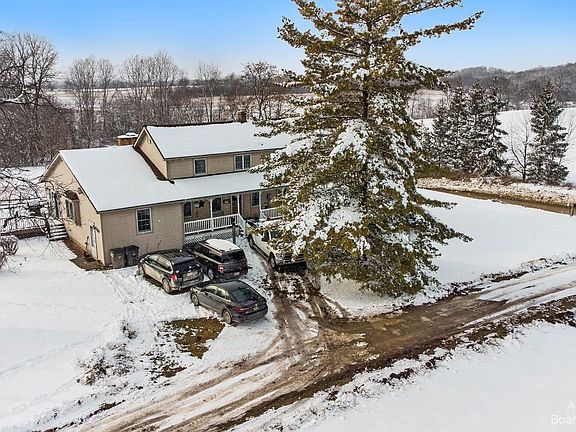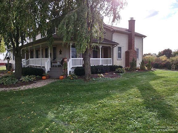 Authentic 1880s country farmhouse with wrap around porch on 30.5 rolling acres conveniently located between Saline and Ann Arbor! Farmhouse combines original details with modern conveniences with an open concept layout where living room has vaulted ceiling and brick wood burning fireplace, huge country kitchen with stainless appliances, oak cabinets, island, snack bar, and oak floors thru dining space with slider to back deck and a patio below the deck with stunning and lush views. 1st floor large primary bedroom with wood burning stove and large 20'x8' walk-in closet. Completing the 1st level is a full bath, laundry room, mudroom, and office with built-in desk and oak cabinets along with exterior door access. Upstairs are 3 spacious bedrooms with original wide plank wood floors, and a fu full bath with claw foot tub. Home also has beautiful wide oak trim throughout. Basement has plenty of extra storage space. Outside is a pole barn, a barn with 6 horse stalls and hay storage, a hoop barn, and old milk house. This picturesque property is perfect for a hobby farm, horse farm, free range chicken farm, the possibilities are endless! Don't miss out on the rare opportunity to own this wonderful farm!, Outbuildings: Barn, Pole Barn, Hoop Barn, Milk House, Topography: Rolling Hills