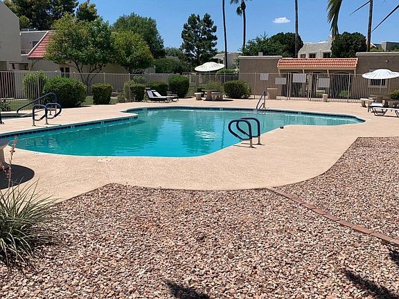Rare 3 bedroom Awesome Townhome with NEW Jeldwen Windows 2017 lifetime warranty. View of Camelback Mountain, Updated Lighting. Goettl AC unit, Private patio with brick pavers hook up for spa. POOL and Greenbelt nearby. Lemon and Orange Tree off patio. 1/2 bath down with Pedistal sink, ceramic tile floors. Private Patio with Parking right near unit.