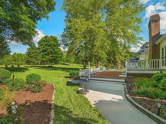 Occasionally something comes along that just feels right. This one feels like home. Tucked away in one of Wake Forest's most prized enclaves, Country Club Downs, on one of its prized tree-filled lots, this beauty has incredible views of the stunning property from its 6-foot main-floor windows. As you sip your morning coffee, all you see is green. Inside, the crown jewel is the MAIN-FLOOR PRIMARY SUITE with its MASSIVE CLOSET with closet system, stunning bathroom with a fully tiled custom shower and soaking tub, and views of the incredible property. The large family room boasts gorgeous high ceilings, a masonry fireplace, plenty of room for large gatherings, and a huge solid wall perfect for a large TV. The entertaining space continues to the MASSIVE BACK DECK which invites you to end the day with a glass of wine overlooking the large river birch trees and expansive lawn. The perfection continues in the infrastructure which includes tankless hot water, encapsulated crawlspace, wide driveway with 4000 psi concrete and extra parking pad, huge side-load garage, and walk-in storage space. Though this home has the peace of a remote cottage, it is a few minutes from Wegmans, Target, charming Downtown Wake Forest, and Joyner Park's summer concerts and walking trails.