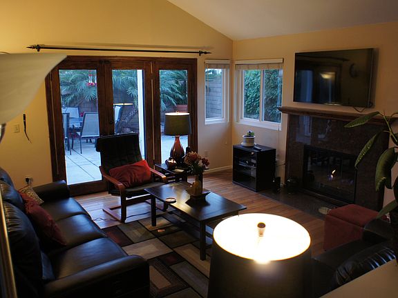 Clean, modern single story home with large master bedroom on corner lot next to greenbelt on quiet private street. Meticulously maintained, move-in ready, neutral colors and upgrades throughout. Open, light, bright and airy. 2 vaulted ceilings in living and master, 3 bedrooms and 2 full baths. Close to dining, shopping, freeways, community college and high schools, walk to Central Park and 3 kid's parks, library, sports complex and bike to the beach! Bright kitchen with granite counters and wooden cabinets, large pantry and garden window. Bright living room with Fire Glass fireplace and French doors opening to patio. Master suite with high volume ceiling. Newly upgraded Master bath with dark cabinets, granite counters; floor, dual sinks, oversized tub and separate tile shower. Full guest bath with slate counter, floor, and shower with glass bowl sink. All new dual pane windows and new washer/dryer and newish refrigerator included. Custom walkway and beautiful flowers and landscaping in front yard. Private tranquil backyard with beautiful landscaping - great for entertaining. Central AC and Heating. Association pool and tennis courts. Great family neighborhood and schools. 1 year minimum lease required. 1 month deposit. Subject to credit and criminal background check. Owner to pay for landscaping. All other utilities to be paid by tenant. Available to show 24/7. Minimum 1 year lease required. 1 month deposit. Subject to credit and criminal background check. Owner to pay for landscaping. All other expenses tenant responsibility. Available to show 24/7.
