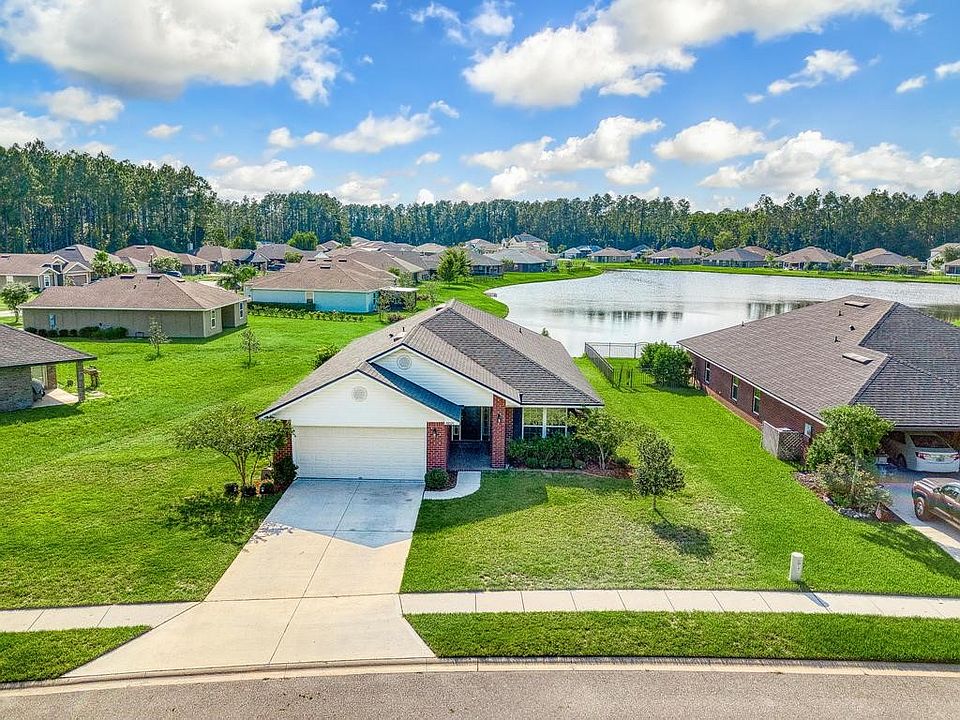 Honey, stop the car! This delightful brick home is perfectly positioned to offer tranquil pond views and features an open concept floor plan that’s sure to impress. Ideal for modern living, the beauty boasts a formal office space, an open dining room, and a massive kitchen that serves as the heart of the home, equipped with a breakfast bar, ample cabinet storage, coffee table space, and sleek stainless steel appliances. The large family room is designed to be the centerpiece of your entertaining and family gatherings, creating a warm and inviting atmosphere. Master suite is a serene retreat, tucked away for privacy. It features a spacious walk-in closet and a luxurious en suite bathroom with double sink vanities, a walk-in shower, and a soothing soaking tub. Enjoy your morning coffee on the covered lanai while overlooking the peaceful pond views—it's a perfect start to any day! Just STEPS away from the fantastic community pool and playground, this home offers convenience and leisure. Located centrally in Lumber Creek, you’ll have easy access to Jacksonville and Amelia Island Beaches, as well as shops and restaurants in town. With NO CDD, you can enjoy all the benefits of this vibrant community without the extra fees. Don’t miss the chance to call this charmer yours!