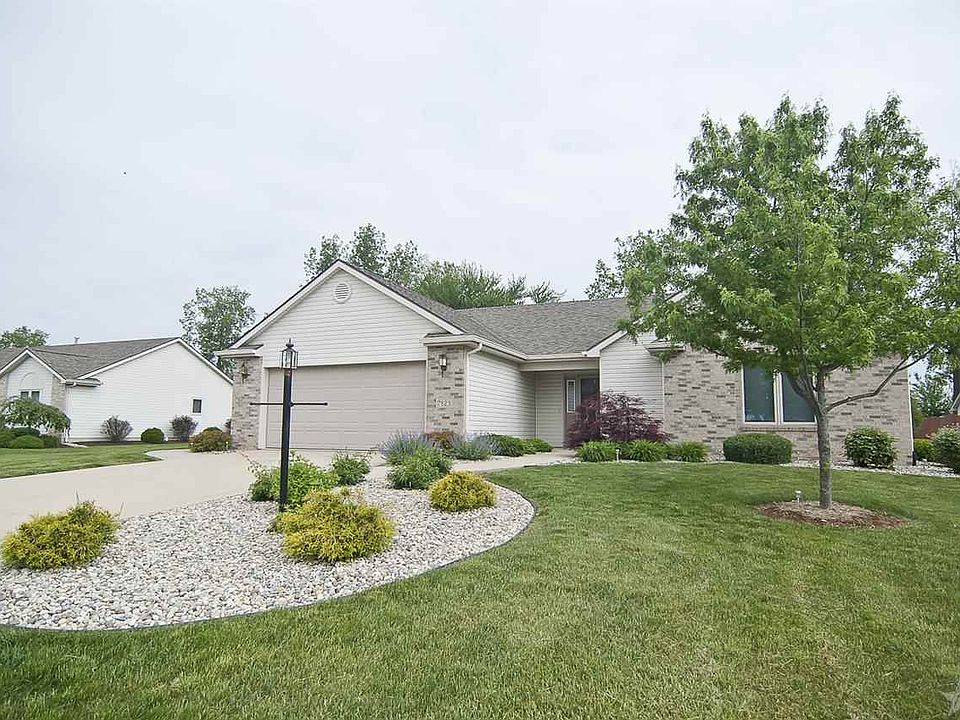 Ranch style 3 bdrm 2 bath home close to SW Ft. Wayne. Open concept home. The large kitchen offers abundant cabinet space as well large pantry, breakfast bar, and ALL KITHCEN APPLIANCES TO STAY! Through the dining room you can enter the 4 season room complete with bamboo wood flooring and a gas fireplace to cozy up by in the winter. The living room is a large space with a cathedral ceiling and another gas fireplace. Master suite offers private bathroom as well as a walk-in closet. There is a 2 car attached garage and storage shed in back of home with electricity. Nice mature landscaping around the home. Subdivision even offers a community playground area.