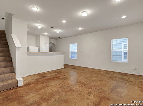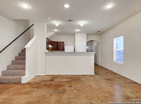 Welcome to this stunning two-story attached townhouse, ideally located with easy access to UTSA, the Medical Center, and many nearby attractions. Step inside to discover an open-concept living space enhanced by high ceilings and beautifully stained concrete flooring. Upstairs, all three bedrooms offer comfort and privacy, while a stackable washer and dryer add everyday convenience. The kitchen comes fully equipped with a refrigerator, making your move-in effortless. An attached single-car garage and a private backyard complete this impressive home, offering both functionality and style in a prime location.