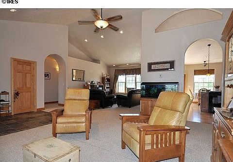 Beautifully designed 3 BD 2 1/2 BA ranch with bonus room loft/office on 1.49 acres. Backs to pond with irrigation rights through HOA. Kitchen with center island, hickory cabinets, master suite with luxury bath. Family room with vaulted ceiling and gas fireplace. Jack and Jill bath for 2nd and 3rd bedrooms. Warm wood floors in kitchen and master suite. 2 car attached garage.