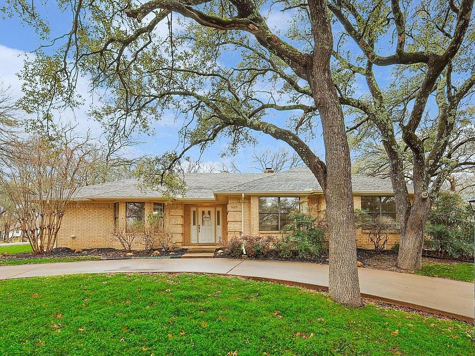 Spacious corner lot with majestic mature trees, this 3 bed 2.5 bath home is just across the street from the Brazos River, surrounded by custom homes. Beautiful curb appeal, expansive 0.41-acre lot, ensuring ample space and the possibility of adding a pool. The dining area, open to the kitchen, features a charming bay window, providing a perfect view to see the deer roaming the front yard. Large living room with brick fireplace. Tons of storage throughout the home. Primary bedroom is a retreat, offering generous space, great natural light, & a convenient door leading to the back patio. The two front bedrooms are equally spacious, each featuring walk-in closets. New roof. Living in Pecan Plantation in Granbury means enjoying a unique community with a wealth of features, amenities, & a sense of community- gated & guarded, pecan orchards, equestrian facilities, marina, country club, golf course, green spaces, airfield, community pool, & friendly atmosphere. Bring the golf cart! New roof!