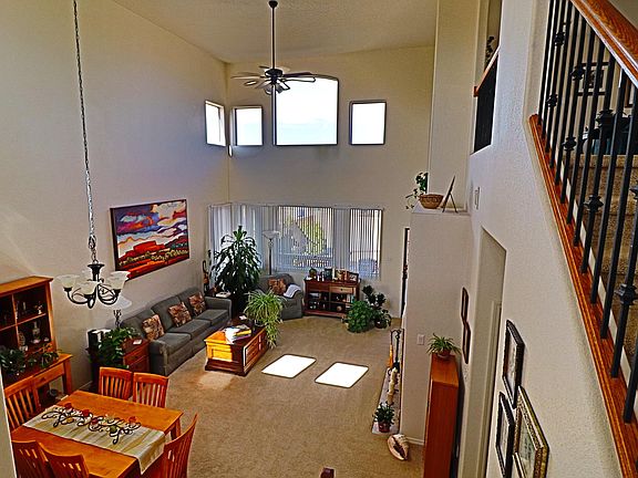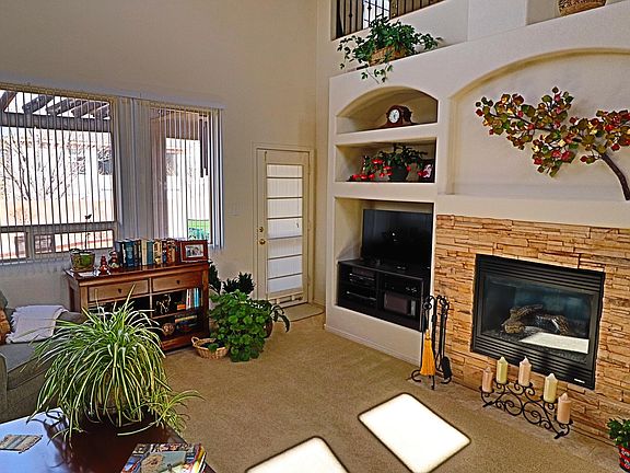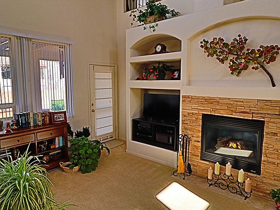 DR Horton Birch model with many Builder options and upgrades*Two-story Great room with dining area has lots of light, stacked stone gas fireplace, and built-in entertainment center with adjacent powder bath*Master bedroom is downstairs* Spacious backyard has covered patio & pergola & views! Upstairs are two bedrooms, full bath, and loft area which is ideal as family room, or office/study! Oversized two car garage is finished. Security and Vacuum systems*New HVAC system with Refrigerated AC in 2017. New carpet 2017.
