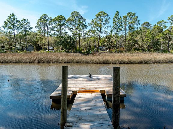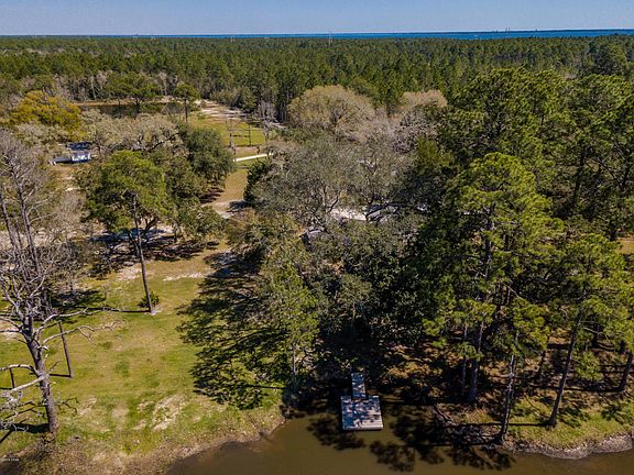 Relax around a fire pit while looking up at the stars, peeking through the Spanish moss of giant oak trees. Spend summer afternoons launching your boat, kayak, or paddle board from your own dock as you head out to the intercoastal waterway of West Bay. Spend early mornings fishing from the banks of your 1 acre pond. Store all your watercraft in the 2 car garage or the pole barn. Zoning R-2 Seller open to dividing parcels.