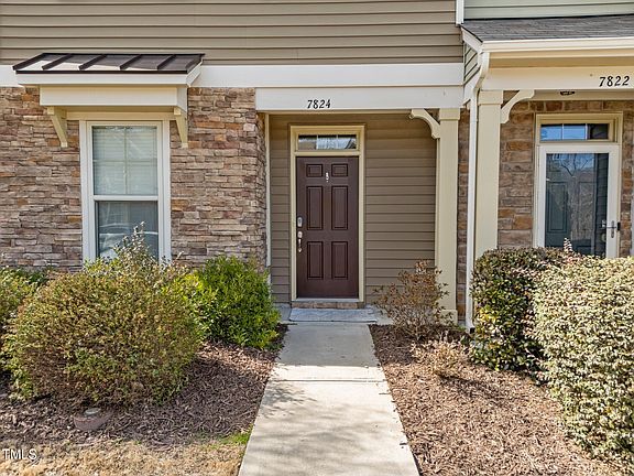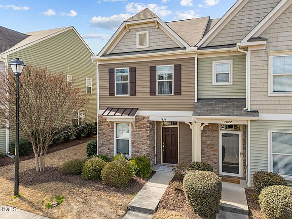 Welcome to this beautifully maintained end-unit townhome, offering a bright and airy living space that's flooded with natural light. Step into the spacious kitchen, where modern quartz countertops, stainless steel appliances, and a stylish tile backsplash create an inviting atmosphere for cooking and entertaining. The open-concept design seamlessly flows into the living area, perfect for both relaxing and hosting guests. The primary bedroom is a true retreat with soaring cathedral ceilings that add to the room's grandeur. Enjoy the convenience of a walk-in closet and a luxurious en-suite bathroom featuring dual vanity sinks and a relaxing garden tub. The second bedroom also boasts its own full bathroom, providing privacy and comfort for guests. Enjoy outdoor living with a private back patio, complete with additional storage space, perfect for enjoying the fresh air or storing seasonal items. The community pool offers a refreshing escape just steps from your door. Located just minutes from RDU Airport, North Hills, and Brier Creek Commons, this townhome offers the ideal blend of comfort, convenience, and location! *Newer AC unit 2021, with transferable 12 years part and labor warranty.*