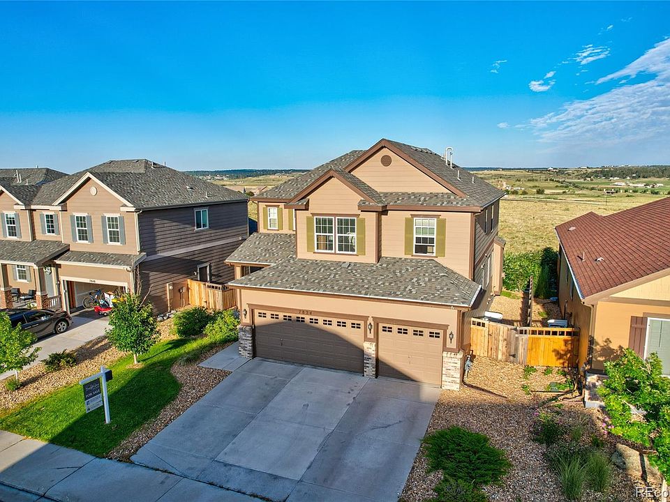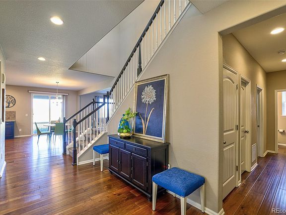 This bright spacious 5-bed/ 4-bath home In desirable Cobblestone Ranch offers an open floor plan and lots of natural light. Enter the beautiful bright foyer and be greeted with gleaming wide plank hardwood flooring and natural sunlight. The open concept is perfect for entertaining with the gourmet kitchen offering a huge center island, gorgeous slab granite and tile backsplash, 42-inch cabinets, stainless appliances, a double oven, a gas cooktop, and large pantry. Enjoy the family room right off the kitchen w/ the bright windows and cozy fireplace or wander out to your extended outdoor living space right off the kitchen with a covered porch to enjoy your year-round Colorado evenings outside. On the main floor also find a formal dining room, a private study, and a powder room. Upstairs find four spacious bedrooms and a loft perfect for the flex space needed for working from home, extra study space…or additional lounging area. The private primary oasis offers an abundance of natural light and ensuite bath W/ granite counter tops, double sinks, large shower, and double closets. The additional 3 bedrooms upstairs are large with plenty of closet space and all are conveniently located to the full bath with double sinks and upstairs laundry room. The fully finished basement with tons of additional storage offers space for guests and recreating! The huge entertainment area is perfect for a super bowl party, game nights or just a get away! Guest wont want to leave with the private 5th bedroom and bathroom. Your new home also offers a three-car garage, a sunny driveway, a low maintenance yard so you don't spend your weekends doing yard work!!! You are only steps from the Community Pool/Rec Center, 2 pocket parks, trails and AMAZING amenities like the new 12-acre ADA-accessible and stroller-friendly park with (Playground, Asphalt pump track for biking, Shelters/Pavilions, Picnic tables and Benches.)See for yourself all this community has to offer!