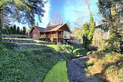 10 minutes from I-5 but it feels like your own private rustic retreat. Look out your picture windows to see woodlands and a beautiful creek flowing through your property. Beautifully manicured yard and decks overlook your waterfront view. Freshly updated bathroom, new carpet, paint and refinished hardwood floors make this a turnkey home. Brand new $14k heating, cooling, air cleaning systems. New windows and exterior doors.
