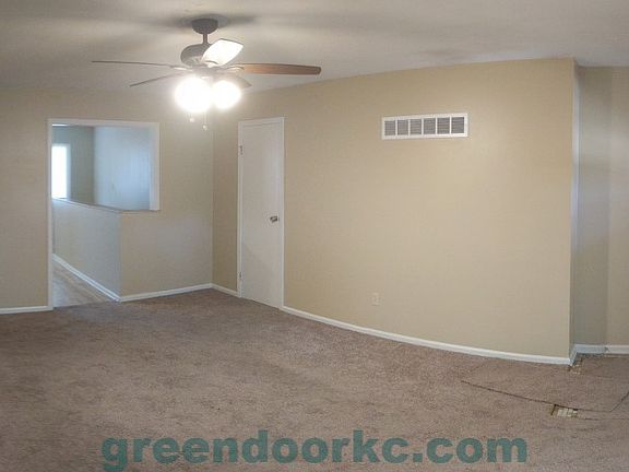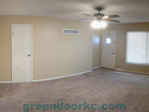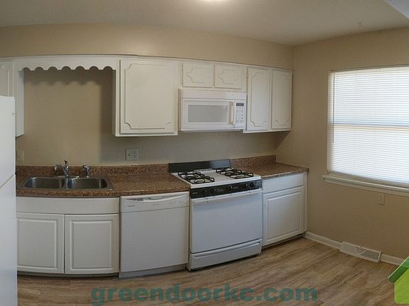 Beautiful 3 bedroom, 1.5 bathroom duplex located near a park, shopping, and hwy access. Less than 5 minutes from the Overland Park Farmer's Market, Hwy 69, and Hwy 35. There are two bedrooms and one bathroom upstairs, with one more bedrooms and a half bathroom downstairs. A deep garage provides all the storage you need. High Quality LED lighting throughout the home reduces electric bills and means you will never have to change a light bulb. The spacious living room has high a ceiling for an open feel. Lawn care included. Call Brian at 913.579.7427 for more information, or apply online at greendoorkc.com