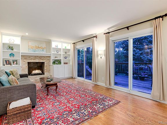 Beautiful curb appeal on a very quiet side street with a walking trail two homes down that leads to a beautiful open wetland loop walk. ** CHERRY CREEK SCHOOLS ** Open floor plan has an updated kitchen with granite countertops, stainless appliances & breakfast bar. Great room has a wood burning fireplace, stone hearth & custom bookshelves/cabinets leading to a Hardwood deck. There is a built-in desk off the kitchen. South-facing stained & leaded glass windows. Large master suite with vaulted ceilings, 5-piece bath & abundant closet space. 2 more bedrooms on the 2nd floor with built-in shelves. Loft area has Velux double paned skylights & vaulted ceilings. The walk-out basement has a family room with red brick fireplace, wet bar, 2 more conforming bedrooms & remodeled basement bath. Fully-fenced yard with mature trees...very private. Attached 2 car garage with workbench & plenty of storage. Double pane Amerimax windows throughout and a composition Class 4 impact resistant roof. Plus the benefit of owned Solar Panels. Great Foxridge community offers a neighborhood pool, and also runs holiday events like carriage rides and luminarias at Christmas, Easter Egg hunts, a summer festival, food trucks at the pool in the summer. Seller is providing a 12 month Home Warranty