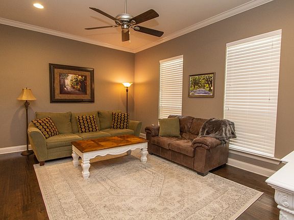Here's a fantastic home convenient to LSU with a great open floor plan. University Villas is a popular gated community south of LSU's campus and convenient to shopping. This home has hand-scraped wood floors in the living room and office. Amenities consist of 9' and 11' ceilings with crown molding throughout, and a large living room. The kitchen has stainless steel appliances including microwave, gas range/over, and dishwasher, large center island, granite counter tops, white cabinets and a pantry. Master suite is roomy with a master bathroom designed with split dual vanities with granite counter tops, separate shower, jetted soaker tub, and a large walk-in closet that flows through the laundry to the mudroom, near the garage. The rear yard is privacy fenced and has a rear porch. For parking, there is a 2 car garage and a driveway that can accommodate multiple vehicles. Flood insurance is not required. Community has a private pool and clubhouse for patrons.