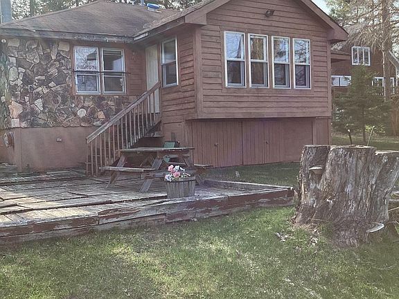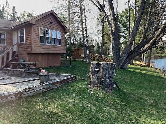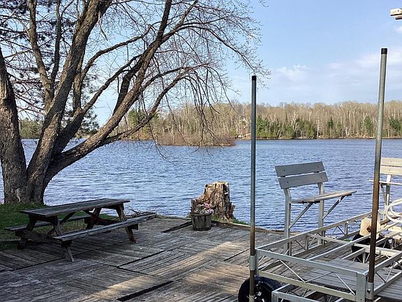 This cabin in the north woods has everything you want for peace and serenity. 3bdr/1bth offers so much with over 100 ft of lake front property. Enjoy mornings with hot coffee/tea on the sunroom while listening to the loons, jumping in the boat/pontoon to enjoy a beautiful sunrise or sunset, this cabin is in an amazing location. 2 garages offer ample storage for all of your seasonal toys. Close by walking trails, snowmobile trails, restaurants and much more!