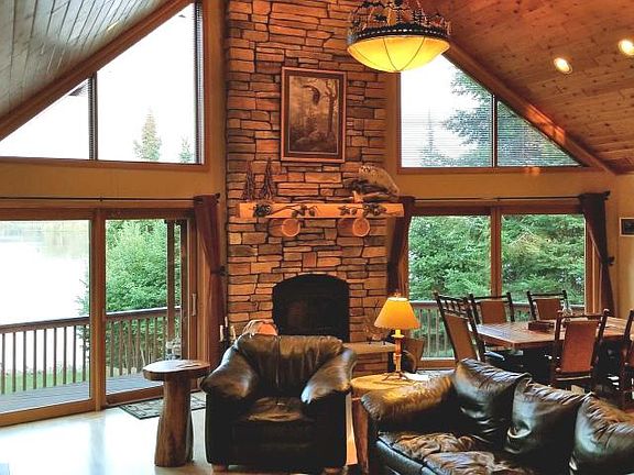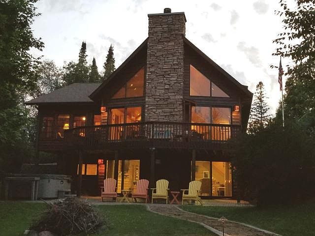 TWIN ISLAND LAKE HOME - If privacy and security are what you are looking for, THIS is the place!! This gorgeous 4+BR/4BA home sits on the east shore of Twin Island Lake for peaceful sunrises with your coffee on the deck or in the 3-season room. As you enter the house you see an open-concept space with a floor-to-ceiling stone fireplace and windows, maple floors and the culinarian's dream kitchen with top-of-the-line appliances. There is a loft with two large BR and full BA; main floor has a master en suite, large office/BR and full BA; and basement has an fitness room/BR with full BA to house family or guests comfortably. Downstairs sports a rec room with wet bar, gas stove and glass doors leading to a large patio with hot tub. This house also has large closets, central air, security system and generator. Yard is tastefully professionally landscaped overlooking the private recreational lake fed by the PI River; stocked with walleye and musky for excellent fishing.