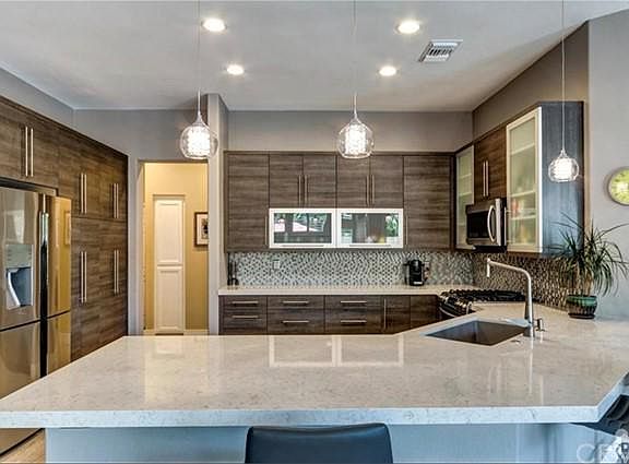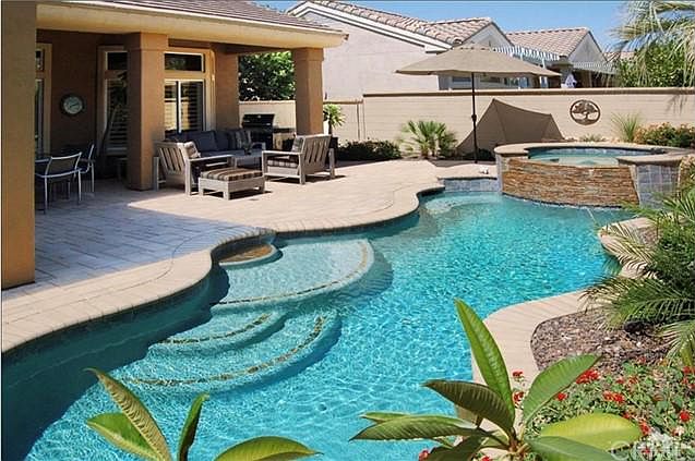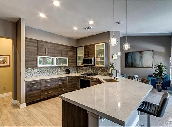 12 MONTHS MINIMUM-UNFURNISHED HOME in 55+ COMMUNITY! Spectacular *Complete Remodel" in 2017! This 2,304 sq.ft. Estate Model' PAVE floorplan will appeal to your Dreams of Relaxation & Entertaining in this exquisitely remodeled 3 bed/2.5 bath GREAT ROOM floor plan. Fabulous landscaped backyard, custom designed Salt Water POOL and SPA with SOLAR and restaurant grade misters. It is so Peaceful you can enjoy an afternoon nap with the relaxing sound of the waterfall! Gorgeous front entry through stunning double glass entry doors. Foyer with high vaulted ceilings opens to the dining room, family room, living room, kitchen and patio. Unbelievable TOTAL Kitchen and Bathroom remodels. Master suite and guest rooms are on opposite sides for extra privacy. The floors are wood look tile, newer carpet in bedrooms, new lighting and plumbing fixtures, hardware, interior and exterior paint, weep screed, new contemporary electric fireplace and custom quartz surround, 2 NEW 2016 Lennox HVAC units, instant hot water, garage A/C, and so much more 2 car plus Golf Cart garage. Golf cart use included in lease. Available Immediately.