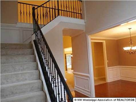 Four bedroom, three full baths, with a playroom on a one acre treed lot and a three car garage. Downstairs is the master bedroom with lots of windows, tray ceiling and door to outside, guest bedroom, two baths, dining room with wood floors, laundry room with outside door, great room with two story ceiling and fireplace. Upstairs are two bedrooms, bath, and a playroom. Two story foyer with wrought iron railing on the stairs and wood floors. The kitchen has granite counter tops and eat in kitchen with breakfast bar, lots of cabinets. The master bath has double sinks and separate tub and shower. Room sizes are estimate. Buyer to verify schools.