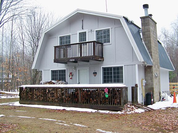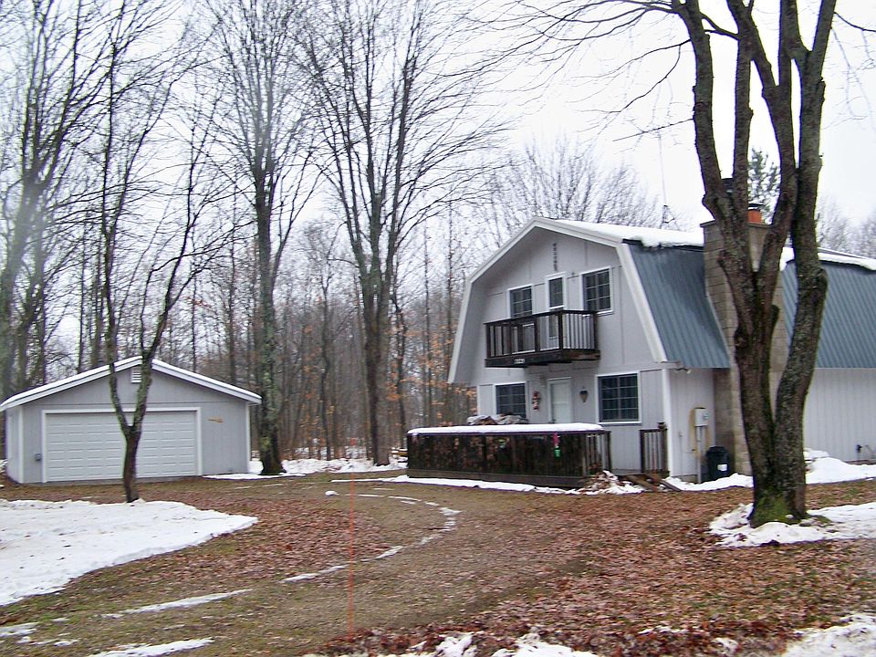 This 3BR, 2Bath home is situated on a large double lot in Lakes of the North. This home has a metal roof and a full basement. The 24x26 garage has plenty of room for all your toys. There is also an additional 15x30 garage. The living room has a large fireplace to supplement the propane forced air heating system. The basement also has a wood burning stove. The 2 large upstairs bedrooms offer plenty of room for those extra guests. The large new deck offers panoramic views of the woods behind the home. Enjoy all the amenities of Lakes of the North has to offer.