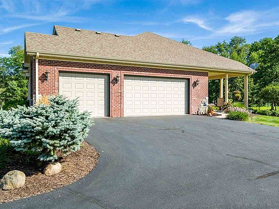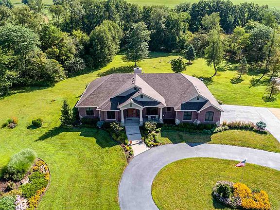Magnificent country retreat! 14 acres with professionally landscaped lawn, creek, natural woods, walking paths, and 60' x 40' outbuilding. Beautiful 10 year old ranch, custom built by Gary Oehlberg, handicapped accessible, impressive foyer into open floor plan, wood floors and multiple built-ins, huge rooms, appliance filled kitchen with island, first floor laundry, 12' ceilings, coffered in master bedroom, massive walk-in closet, tons of storage. Wet bar in the rec room, large patios (one covered), partially exposed basement with open stairway from the Great Room and a second stairway to the garage. Heated outbuilding with water. Agriculture zoning, so horses are welcome and families of deer are frequent visitors in the backyard.
