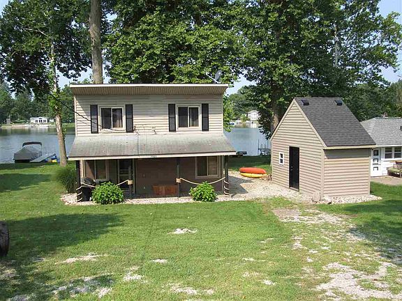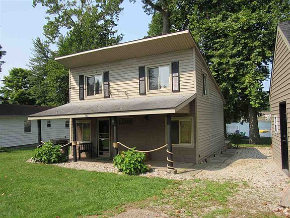 LAKEFRONT GEM on desirable Loon Lake, 3-BR lofted cottage, almost 900 sq ft, spacious lot with mature trees, 60 ft of lake frontage, 2 piers, firepit and a sandy beach. This adorable home has a new kitchen with beautiful hickory cabinets and new appliances. The family room has a knotty pine vaulted ceiling and a wall of windows to maximize the lake views. The covered porch and lakeside deck provide additional space for entertaining and enjoying lake living. Loon Lake is approximately 220 acres with skiing from 1-4 pm and great fishing! Also ideal for year-round living.