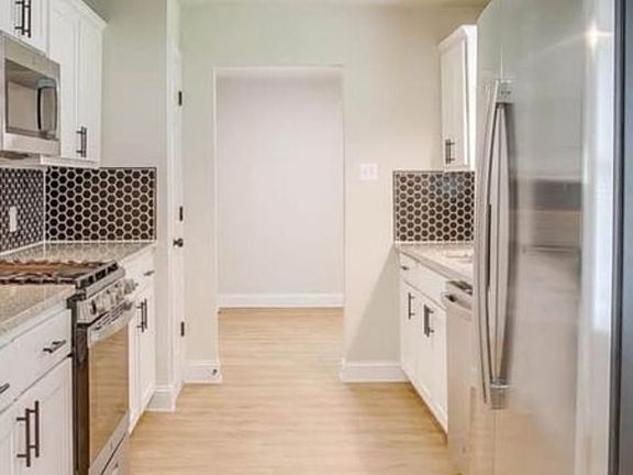 The home features new vinyl plank flooring throughout, fully renovated master bath with walk in shower, modern kitchen with all new stainless steel appliances (fridge included!) Exceptionally large, fenced in backyard! Pets welcome!