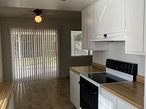 Large backyardNew carpetingNew flooringWhole house fanPlenty of cabinetsCovered patioDishwasher and electric oven