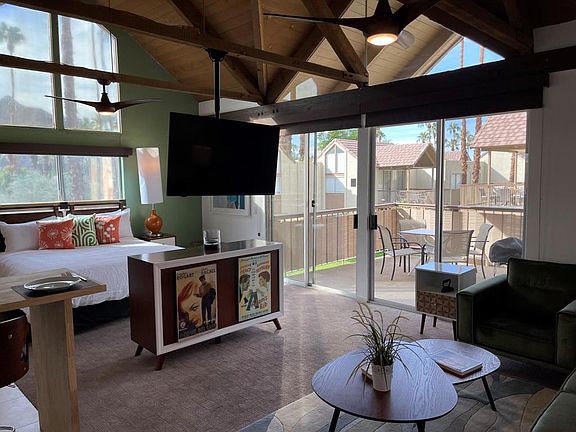 Newly updated remodeled bathroom, seamlessly equipped with a brand-new washer and dryer. Have you ever dreamt of owning a short-term rental property that's fully prepared and ready to host? Investor Turn Key down to the coffee. And the convenience of welcoming guests without a fuss? Now, immerse yourself in the heart of Indian Wells, the 'hidden gem of Coachella Valley'. Situated in America's wealthiest city, it's a place where tranquility meets affluence, and you're just moments away from Palm Springs' vibrant attractions. Can you envision being part of this elite enclave, with the world at your doorstep? Visualize your mornings and evenings in a luxurious 516 sqft, 1-bedroom condo. Every detail curated for elegance and warmth, making each day feel like a cherished retreat. How comforting would it be to experience the calm ambiance, akin to a serene desert hike, every single day? As the day unfolds, imagine stepping onto the balcony. And on sun-drenched days, how delightful would it be to cool off in the heated pool, your very own fairytale oasis? Beyond your doorstep lies a world of conveniences. Whether you're picking up baked delights from LQ Baking Company, watching a game at The Beer Hunter sports bar, or indulging in sushi at the Okura Robata Bar & Grill, everything feels so close, so connected. Indian Wells promises a lifestyle where luxury and nature dance in perfect harmony. How soon do you want this dream to become your reality? Non-Warrantable Condo.