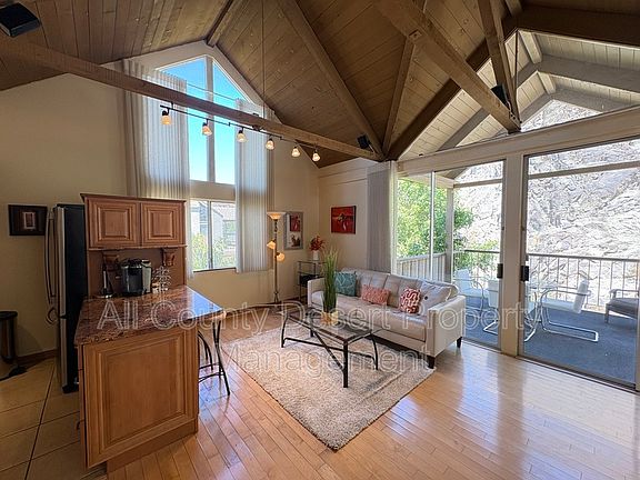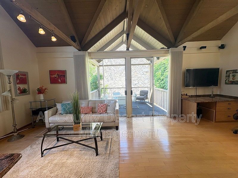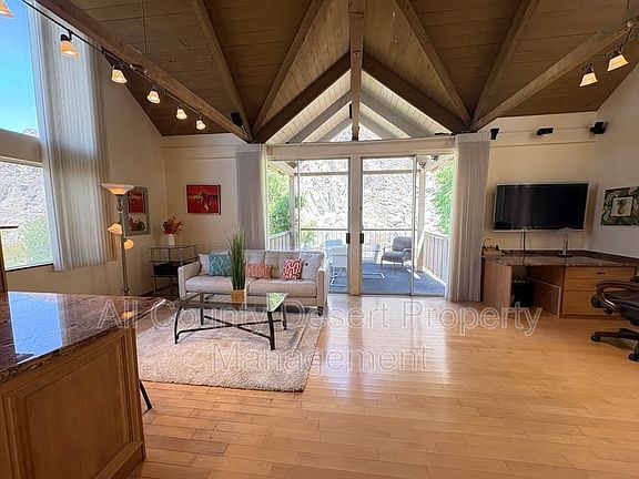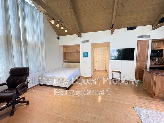 Adorable furnished upstairs studio condo available for long term lease in the guard gated community of Mountain Cove in Indian Wells. Completely renovated with hardwood laminate plank flooring in the main area and tile in the kitchen, bath, and hall. Kitchen area with new full size stainless steel stove, refrigerator and microwave. Beautiful bathroom with granite counters and large tiled shower. Vaulted ceilings with floor to ceiling windows give this home an open feel. Patio doors leading out to a private balcony facing the mountains. Tenant to pay only for electric. Coin laundry on site. Trash and water included in the rent. Tenant to have access to community pool/spa. Golf is pay to play. All applicants must pass a comprehensive background screening. All applicants must pass a comprehensive background screening including income verification and landlord, references. Renter's insurance is required. All applicants must have the following: monthly income of at least 2.5 times the monthly rent, a good rental history and an acceptable credit score. Please be aware of rental scams. If you see this home advertised for less than the amount stated here, it is fraudulent. We are the only authorized agent for this property. Never send money to anyone offering keys in exchange for a deposit, especially if they are out of state. If you come across a suspicious ad, please send us the link so it can be reported to the proper authorities. When in doubt, contact us directly. Schedule your showing online today!