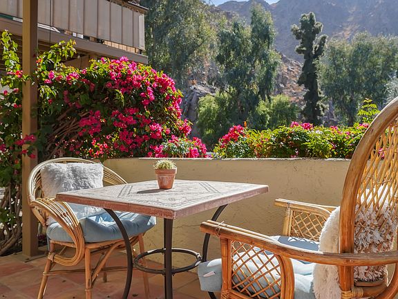 Nestled within the exclusive Mountain Cove community in Indian Wells, this beautifully maintained 1-bedroom, 1-bathroom condo offers the perfect desert retreat. With scenic mountain views and a private patio just steps from one of the three heated community pools, this home provides an ideal setting for relaxation. Enjoy the unique Spanish backsplash tile, arched doorways, and Saltillo tile flooring that enhance the character of the home. Located centrally to all the desert's attractions, you're only minutes away from the Indian Wells Tennis Garden, the Indian Wells Farmers Market, Coachella, Stagecoach, and the world-class shopping and dining on El Paseo. This unfurnished condo is ready for its new tenants and offers a peaceful, upscale lifestyle in a sought-after gated community. Don't miss the opportunity to make this your new home! Tenant pays electric, internet/cable, patio maintenance. Water, Trash included in rent. Laundry in community. Electric Vehicle Charging in Community. Condo has been virtually staged. Unfurnished Tenant pays electric, internet/cable, patio maintenance. Owner Pays Water, Trash. Laundry in community. Electric Vehicle Charging in Community. No smoking. Dog breed restrictions - please inquire.