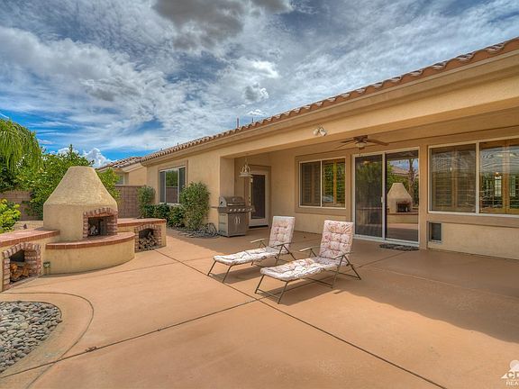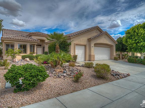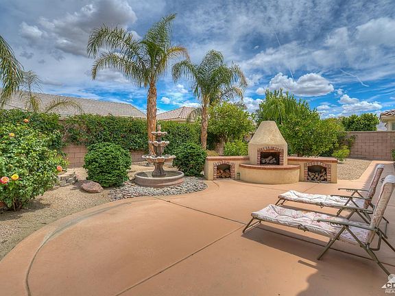 Sun City Palm Desert- St. Croix. This popular greatroom home is located a short distance from the Lakeview clubhouse and fitness center. The home has a spacious north facing rear yard w/an extended patio, built-in in fireplace, a fountain and low maintenance desert landscaping including citrus and palm trees. Inside, wood shutters are throughout. High quality laminate wood flooring and tile are throughout. The greatroom has a slider to the rear and surround sound. Off the greatroom is a den and hobby room; each w/builtin desks and cabinetry. The kitchen has a breakfast bar w/pendant lighting, a chef's island, wall oven and granite tile counters. Maple cabinetry is in the kitchen and bathrooms. The master suite has crown molding and large walkin closet w/builtin storage. The master bath has dual sinks and stall shower w/glass enclosure. A tub is in the guest bathroom. Bath surfaces are cultured marble. A utility sink and cabinetry is in the laundry room. The extended 2+ golf cart garage has builtin storage.