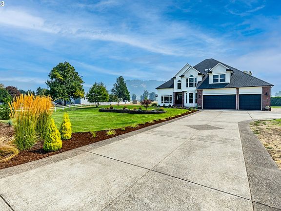 Absolutely stunning custom home situated on two acres in the coveted luxury community Riverview Estates! Let your troubles fade away as you arrive at your own peaceful estate. The home's numerous windows provide superb views, connecting you with the beautiful natural surroundings. A lovely kitchen with gas cooking, center island, and ample prep & storage space opens to a dining area and a family room with a cozy gas fireplace. The primary bedroom suite features a generously sized walk-in closet, jetted tub, walk-in shower, and a private balcony with gorgeous views. Formal living room with fireplace, formal dining room. Main-level office could be a 4th bedroom. Large bonus room upstairs. The spacious patio is the perfect place to relax and unwind. Spend your evenings with family and friends around the fire pit. Walk to the Row River Trail, close to river access, hiking, pickleball, golf and other outdoor recreational activities. New roof with transferrable warranty, new gutters, new heat pump, all installed in summer 2022. Three-car extra deep garage, plus RV parking with hookup. Just minutes from shopping & restaurants in Cottage Grove, easy commute to Eugene/Springfield. Don't miss out!